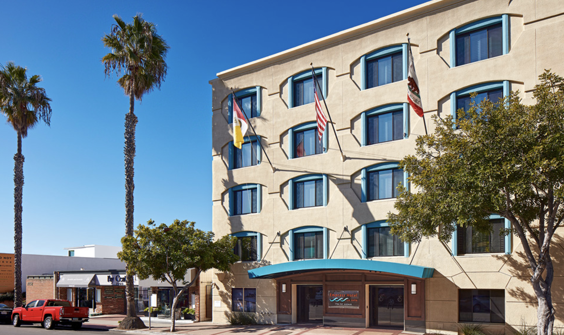 Experience California comfort at our charming boutique hotel in the scenic village of La Jolla, California. We are a pet-friendly hotel with a signature Hotel Beach Concierge service, where guest can request beach supplies for use anytime during their stay. The Empress Hotel is situated just steps from the San Diego Area's famous sandy beaches and downtown La Jolla, only minutes from popular attractions like SeaWorld and Torrey Pines golf course. Our boutique hotel is the perfect location to embark on an unforgettable vacation or business trip.